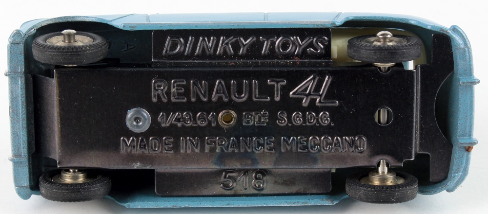 French Dinky 518 Renault 4L. Rare version in SUEDE BLUE. Very, very near mint/boxed. From The Salopian Collection.