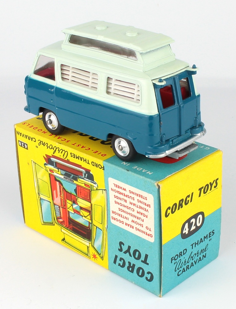 Corgi 420 Ford Thames Airborne Caravan. Teal and very pale blue issue. Very near mint/boxed. Scarce. From The Reference Collection.