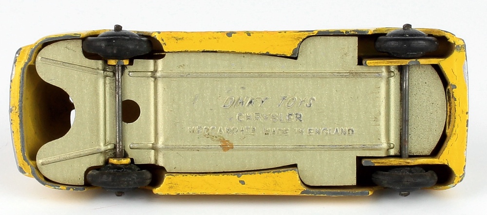 Dinky 39E Chrysler Royal Sedan. Rare pre-war model. Excellent plus/never individually boxed. Rare issue in YELLOW & smooth black wheels. A first for QDT! With period advertisement. From The Phillips Collection. QDT starting bid £450. Please note that QDT apply 12.5% buyer's commission.