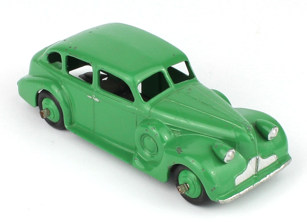 Dinky 39D Buick Viceroy Saloon. LIGHT, bright mid-green issue with matching wheels & factory-silvered door handles. Made for one year only (1950). Near mint/not individually boxed. Very scarce! From The Phillips Collection.