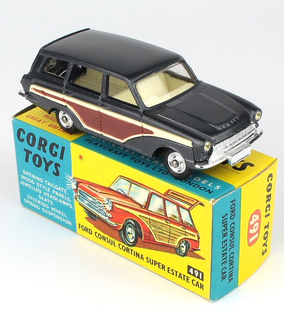 Corgi 491 Ford Consul Cortina Super Estate Car. Very, very near mint/boxed. Graphite grey issue. Fresh box. From The Reference Collection.