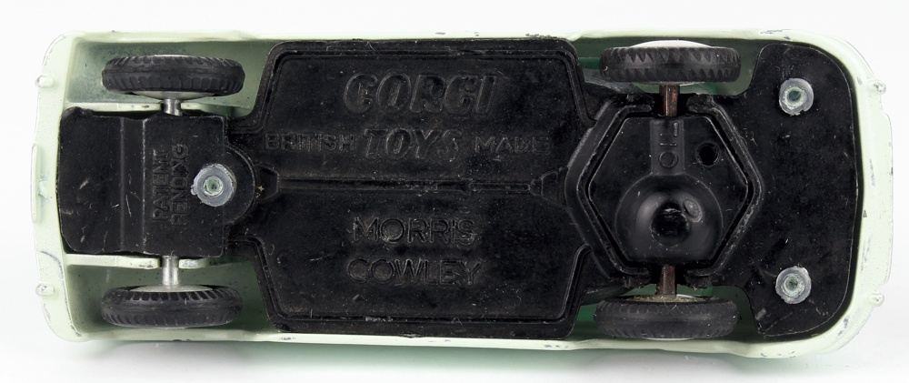 Corgi 202M Morris Cowley Saloon. Palest green version. Very, very, near mint/boxed with promotional booklet & PINK Corgi Club Membership Form. Scarce. From The Fenman Collection.