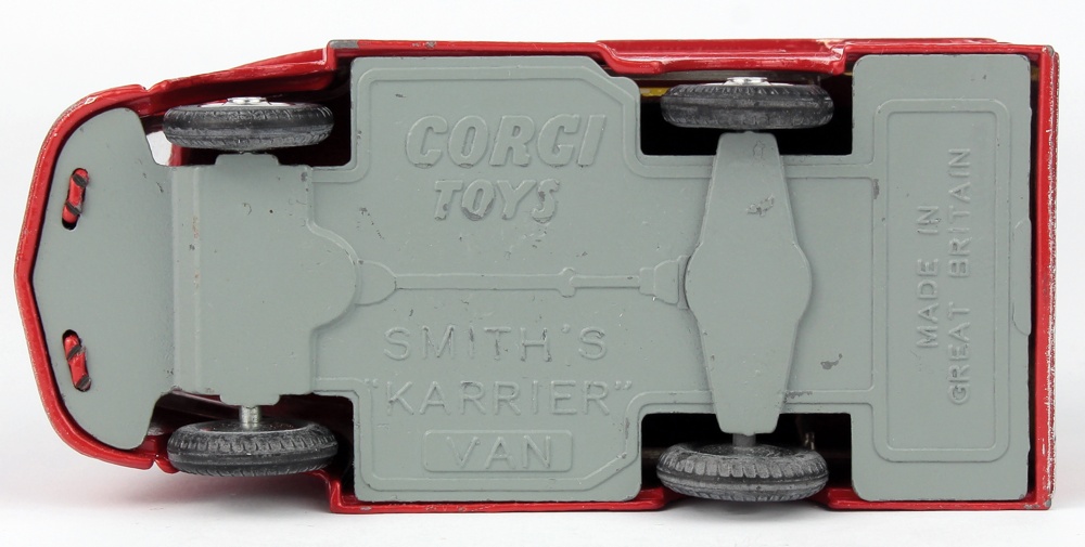 This Karrier Bantam van has a bright scarlet red and blue paint finish, a complete and bright ‘BOOKING OFFICE’ label on the cab, vivid, detailed labels/transfers at sides. Complete circus label at the rear. Shaped spun wheels with suspension.