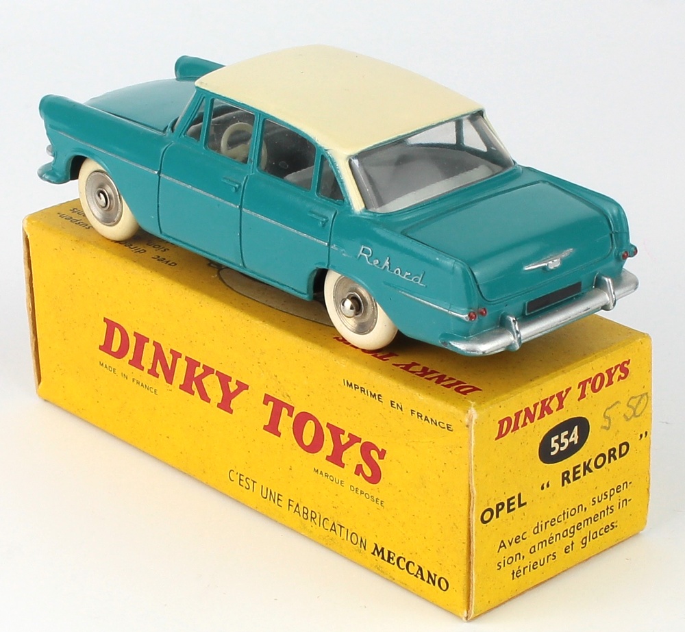 French Dinky 554 Opel Rekord. Rare version in DEEP TURQUOISE & WHITE. Very near mint/boxed. A first for QDT! QDT starting bid £800. Please note that QDT apply 12.5% buyer's commission.