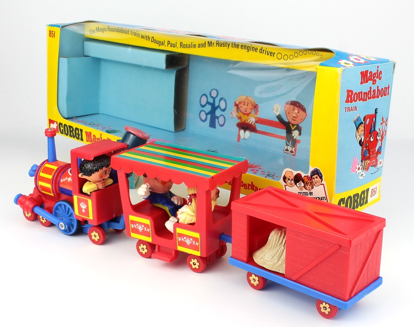 Corgi 851 Magic Roundabout Train. Very near mint/boxed, with original sealed packet of blue nylon rope. Hard to find this good! From The Cumbrian Collection. Starting bid £150. Please note that QDT apply 12.5% buyer's commission.