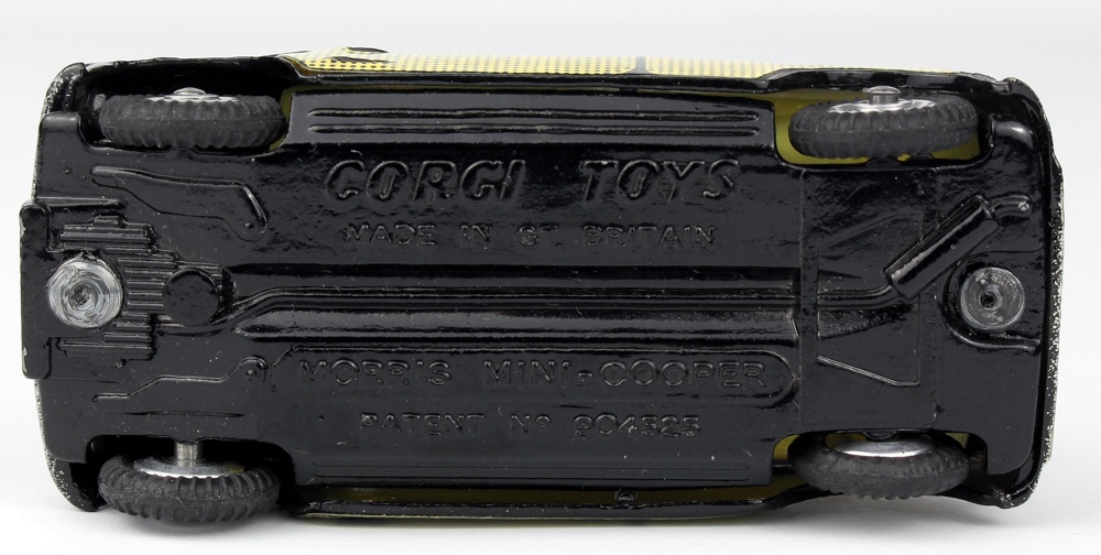 Corgi 249 Morris Mini-Cooper 'Wickerwork'. Spun wheels. Early casting without horizontal front wing casting line. Very, very near mint/boxed. From The Barcelona Collection.