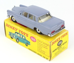Dinky 186 Mercedes-Benz 220 SE. Very, very near mint/box end flap repair. Rare South African issue in lilac from a long-standing collector in Germany. Starting bid £2000. Please note that QDT apply 12.5% buyer's commission.