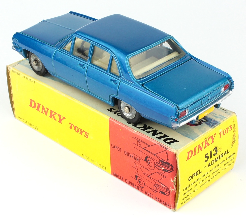 French Dinky 513 Opel "Admiral". Metallic MID-BLUE, cream interior. With 2 pieces of luggage. Near mint plus/boxed. From The QDT Vault.