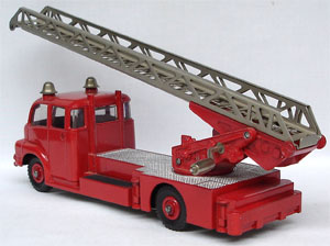 3) Dinky 956 Turntable Fire Escape is in close to mint condition with window glazing, silver platform, ridged Supertoy wheels. Both bells are present on the cab roof! Bright winding handle operates the raising and lowering of the two-piece extending ladder.