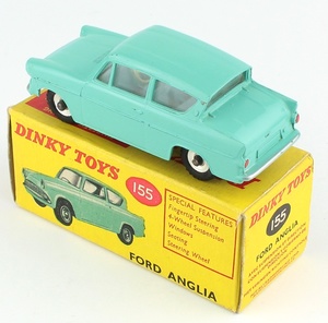 Dinky 155 Ford Anglia. Near mint plus/boxed. Turquoise with more unusual pale blue interior. From The Brighton Collection.