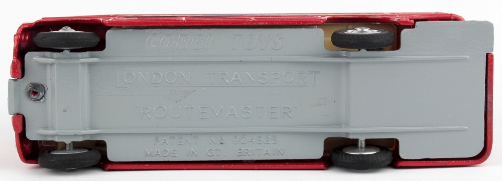 This is an early Routemaster Bus with all the attractive details not present in the later issues. Bright spun wheels. Jewelled headlights. Conductor and driver. Ribbed roof and vivid, unfaded colours throughout.