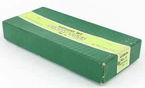 A delightful Dinky Gift Set issued between 1946-54, it comprises four Dinky 2b Sheep, 1 Dinky 6a Shepherd, and 1 Dinky 6b Collie Dog – all still strung to the dark green base.