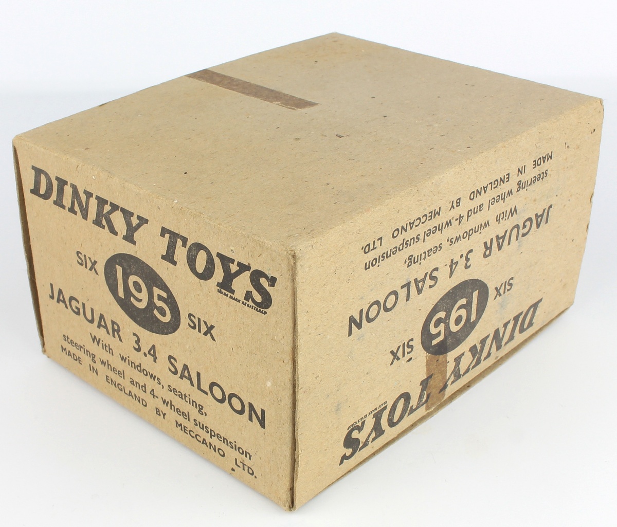 Dinky 195 Jaguar 3.4 Saloon. Very, very near mint/boxed. Outstanding. Cream version. With original Shopkeeper's Trade Box. From The Sussex Collection. QDT starting bid £175. Please note that QDT apply 12.5% buyer's commission.