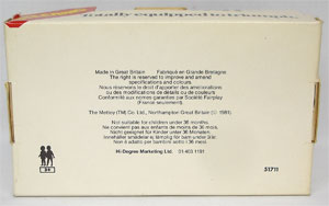 Issued during 1981 prior to the subsequent release in the conventional Corgi style box, this item was promotional and probably sold at Triumph showrooms, motorshows etc. The only mention of Corgi is on the base of model and box: