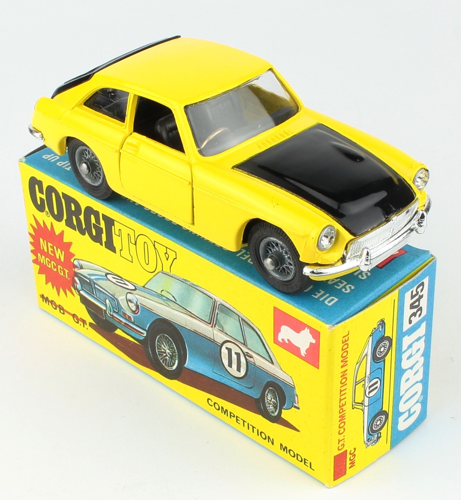 Corgi 345 MGC GT. Very near mint/boxed (interim box ). With correct suitcase. Very fresh box too! From The QDT Vault.