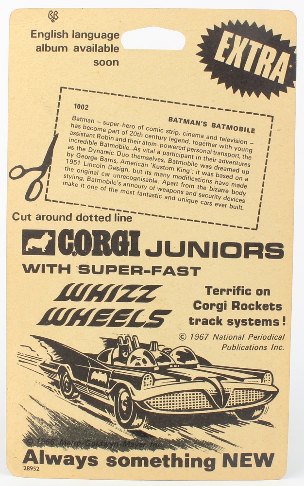 Corgi Juniors 1002 Batmobile. Mint/boxed. Scarce. From The Monty Calme Husky and Corgi Junior Section. QDT starting bid £175. Please note that QDT apply 12.5% buyer's commission.