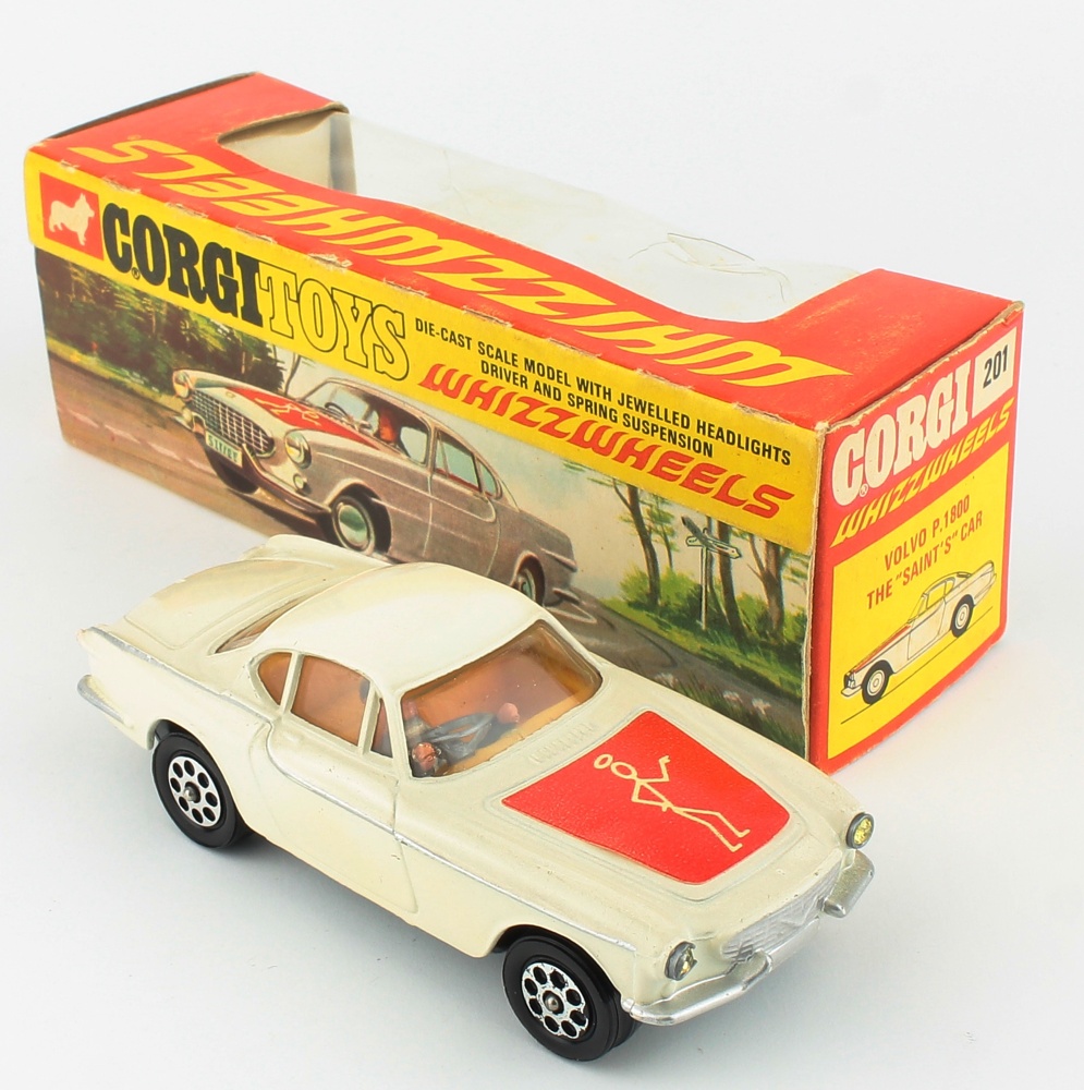Corgi 201 Volvo P.1800 The 'Saint's Car'. Very near mint/boxed. Scarce DEEP CREAM issue with orange-red bonnet label. From The Heart of England Collection.