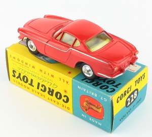 Corgi 228 Volvo P.1800. Scarce ORANGE-RED issue. Spun wheels. Near mint plus/boxed. From The Heart of England Collection.
