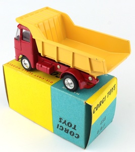 Corgi 458 ERF Earth Dumper. Very near mint/boxed. Shaped spun wheels issue. Scarce PLAIN blue & yellow panelled box. From The Reference Collection.