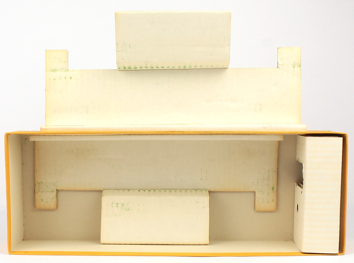 The original card packing pieces are complete and fresh-looking. Note the small paper strips which protect the missile too. Rare find.