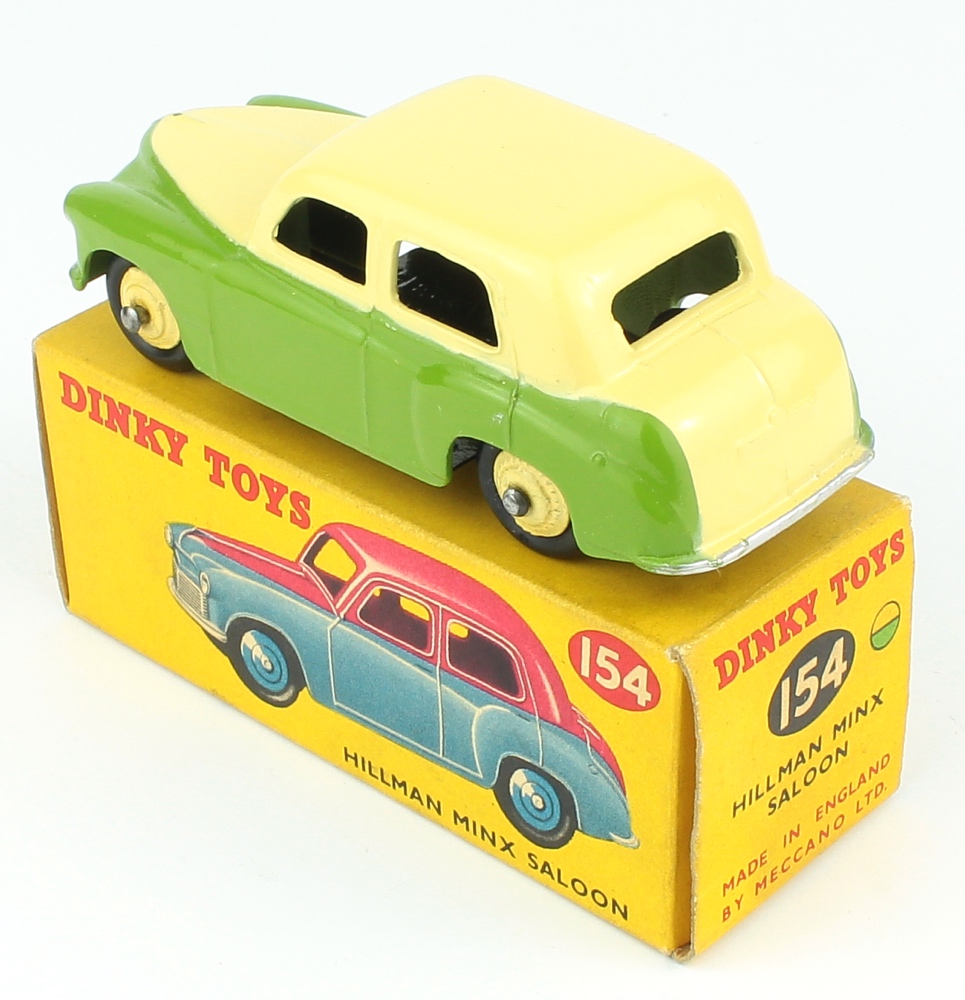 Dinky 154 Hillman Minx Saloon. Scarce two-tone issue in lime green and cream. Very near mint/boxed. Correct two colour spot box. From The Cumbrian Collection.