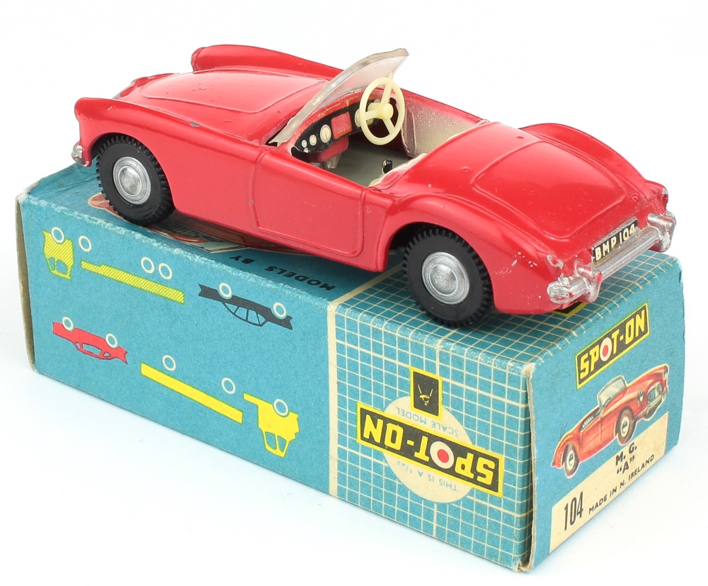 Spot-on 104 MGA. SCARLET RED. Near mint plus/boxed. From A Phenomenal Collection at QDT. Starting bid £150. Please note that QDT apply 12.5% buyer's commission.