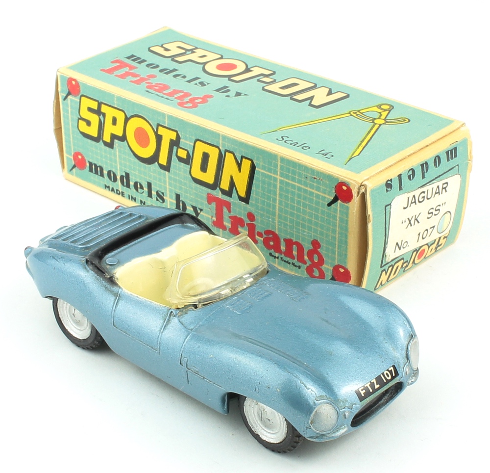 Spot-On 107 Jaguar XK SS. Metallic blue. Very near mint/boxed, with Informative Leaflet & Promotional Leaflet. Scarce. From A Phenomenal Collection. Starting bid £150. Please note that QDT apply 12.5% buyer's commission.