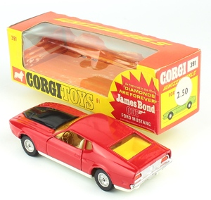 Corgi 391 James Bond Ford Mustang Mach 1. With UNPIERCED 8-SPOKED WHEELS. Very near mint/boxed. Inspired by the film 'Diamonds are Forever'. From The Pennsylvanian Collection.