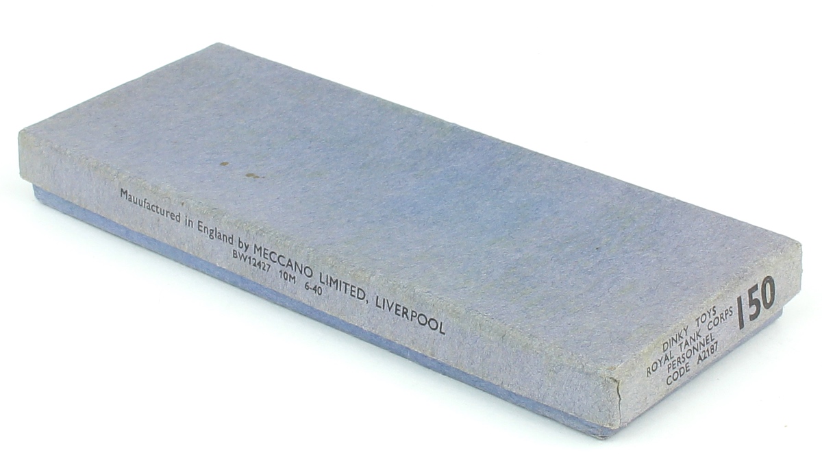 Dinky 150 Royal Tank Corps Personnel. Excellent plus - mint/boxed. 1940 issue. A difficult find with such a well-preserved outer box. Delightful and scarce early Dinky Set from A Phenomenal Collection.