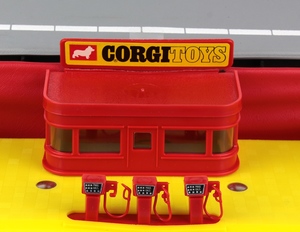Complete with colourful Corgi Toys sign (usual back edge split where it attaches to the service station).