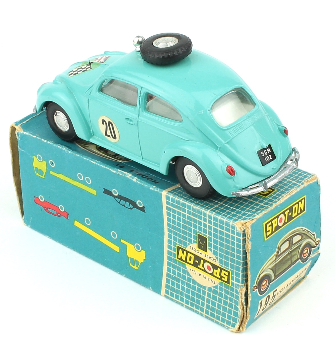Spot-On 195 Volkswagen Rally Car. Turquoise, with racing number 20. Very near mint/boxed (wear). Scarce model. From A Phenomenal Collection. Starting bid £200. Please note that QDT apply 12.5% buyer's commission.