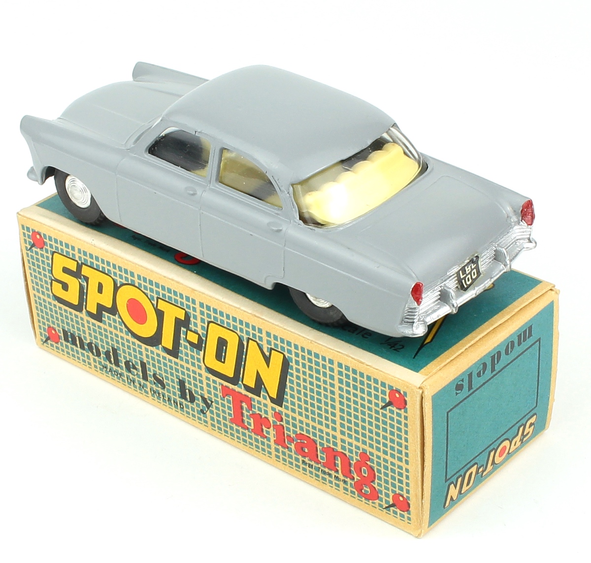 Earlier issue of the Ford Zodiac (i.e.without lighting fitment)is in original condition with a grey finish, cream interior, grey steering wheel. Complete number plates. Shiny spun wheels and well-shaped tyres.