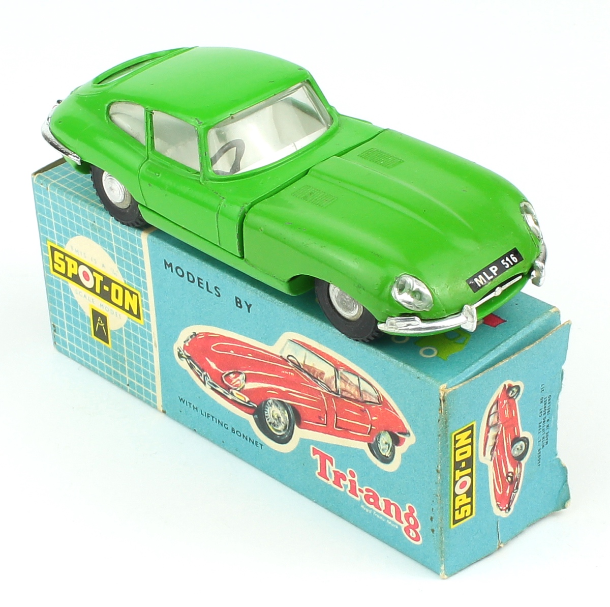 Spot-On 217 'E' Type Jaguar. Bright mid-green issue. White interior. Scarce. Near mint plus/boxed, with leaflet. From A Phenomenal Collection. QDT starting bid £200. Please note that QDT apply 12.5% buyer's commission.