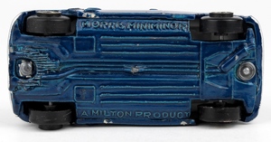 Using the casting from Corgi 226 Mini Minor model, this is the Milton version in vivid deep blue with jewelled headlights, silver trim, later issue with one-piece wheels and tyres (suspension). Rivetted base. Window glazing & detailed interior.