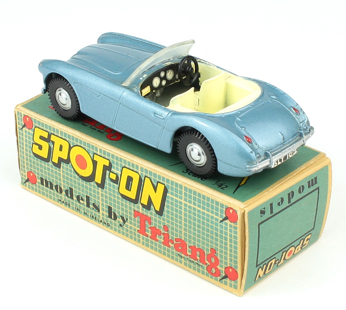 Spot-On 105 Austin-Healey "100-SIX". Metallic mid-blue version. Very near mint/boxed. With picture card and leaflet. Scarce. From A Phenomenal Collection. Starting bid £175. Please note that QDT apply 12.5% buyer's commission.