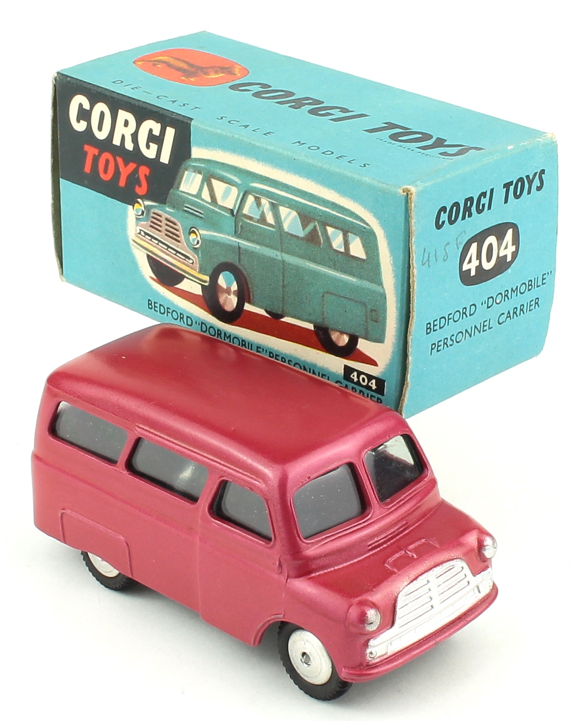 Corgi 404 Bedford "Dormobile" Personnel Carrier. Metallic mid-cerise version. Very near mint/boxed. From The Pennsylvanian Collection.