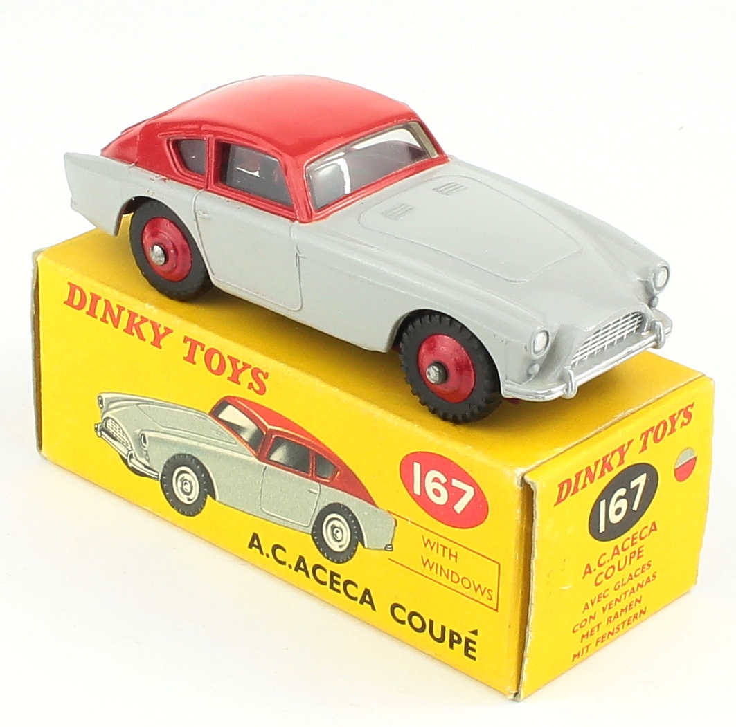 Dinky 167 A.C. Aceca Coupe. Very near mint/boxed. Red and grey issue, cast wheels. From The West Midlands Collection.