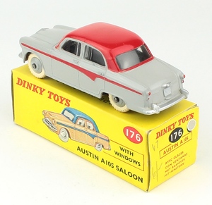 Dinky 176 Austin A105 Saloon. Very, very near mint/boxed. Grey with red roof and side flashes, grey cast wheels. From The West Midlands Collection.