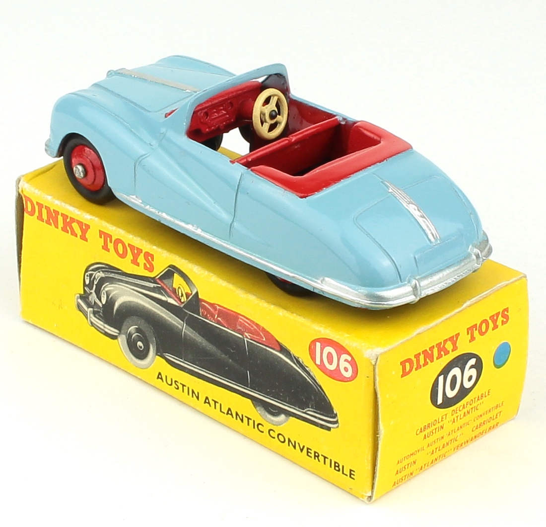 Dinky 106 Austin Atlantic Convertible. Blue version with red wheels & interior. Very, very near mint/boxed. From The West Midlands Collection.