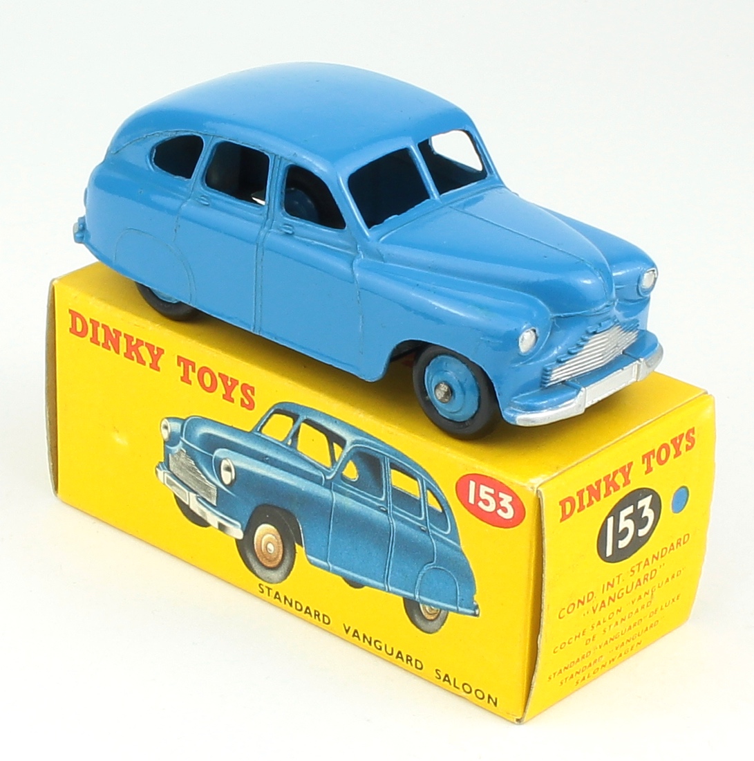 Dinky 153 Standard Vanguard Saloon. Very near mint/boxed. Mid-blue issue - and a rare find with BLUE wheels. Nice box too! From The West Midlands Collection. Starting bid £300. Please note that QDT apply 12.5% buyer's commission.