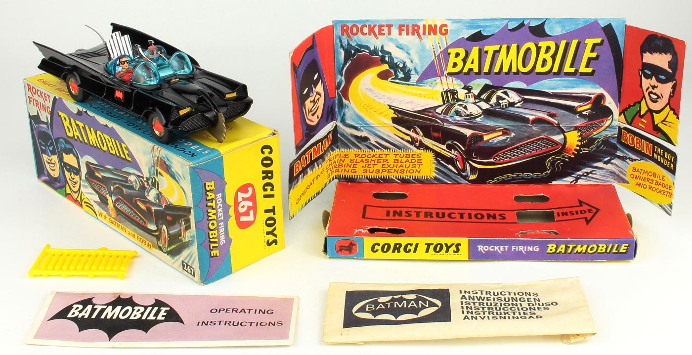 Corgi 267 Batmobile. Very near mint/boxed. Most sought-after 1st issue, correct without tow hook. With Secret Instruction Packet. From The Eric Morris Collection. Starting bid £250. Please note that QDT apply 12.5% buyer's commission.