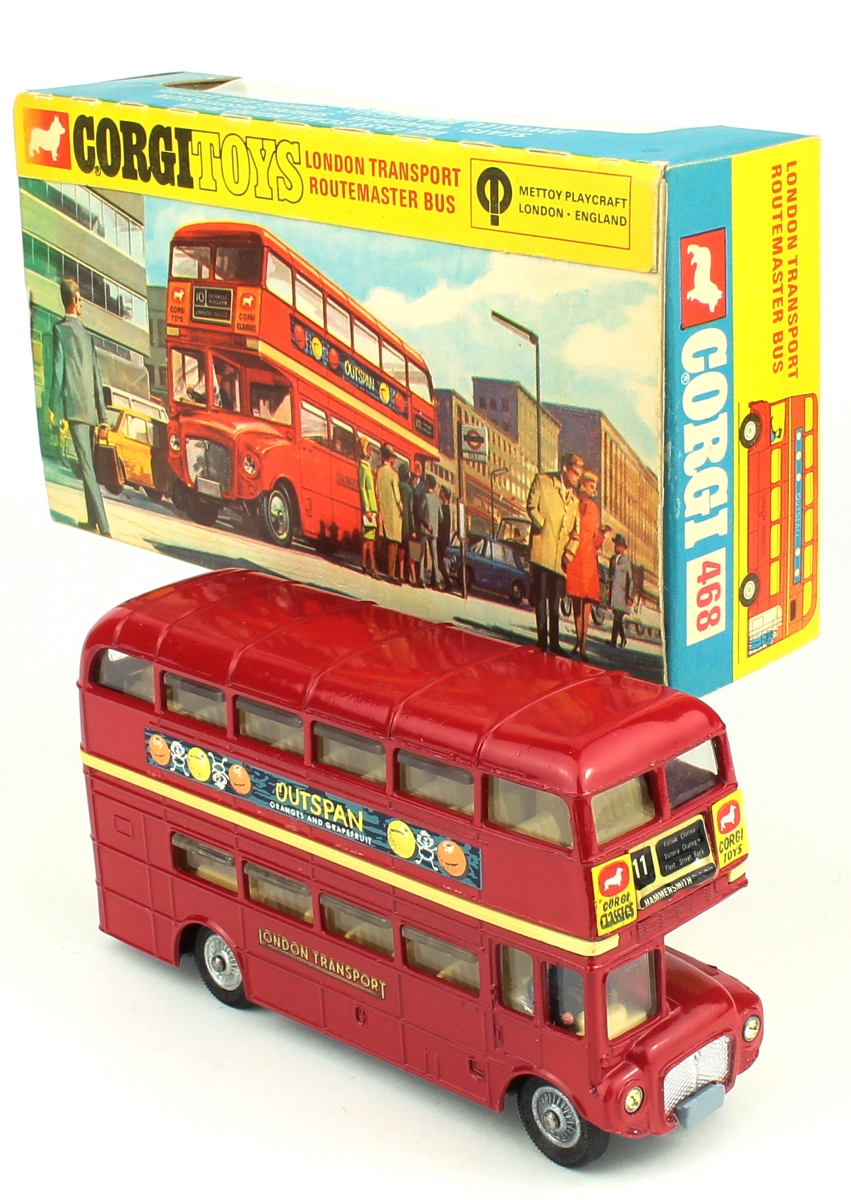 Corgi 468 London Transport Routemaster Bus 'OUTSPAN'. Very near mint/boxed. CAST WHEELS issue. From The Eric Morris Collection.