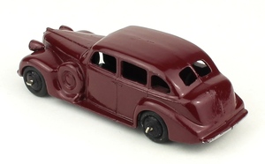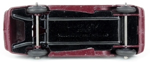 This car has a rich, deep original maroon finish with a shiny, black early railed baseplate (minor ‘spidering’) and black ridged hubs. Shiny axles. Well-shaped original smooth tyres.
