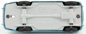 An attractive vivid Sky Blue finish on this Aston Martin DB3 model, issued by the respected Tri-ang toy maker. 1:42 scale. Year introduced:1960. Cream interior and a grey steering wheel. Spun wheels and well-shaped tyres.