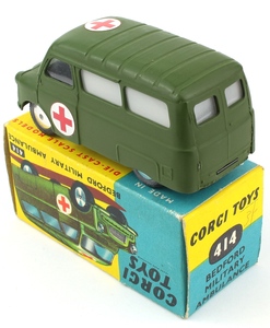 Bedford Military Ambulance by Corgi Toys, No. 414. Very, very near mint/boxed. First issue with flat spun wheels. From The Eric Morris Collection.