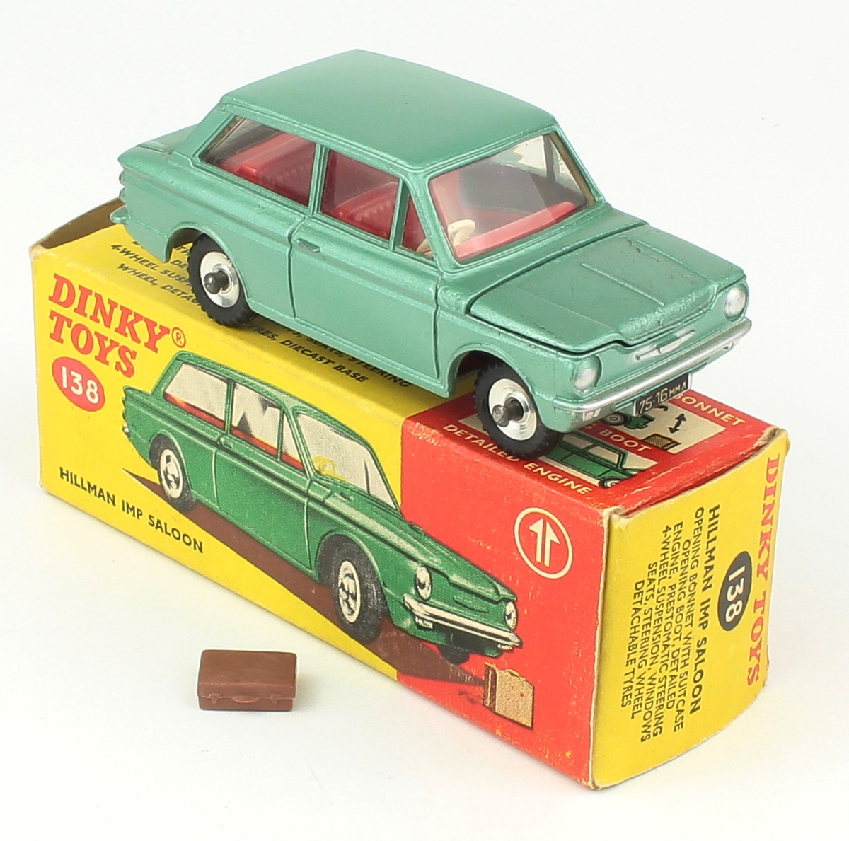Hillman Imp Saloon by Dinky Toys, No. 138. Very near mint/boxed. With luggage. Crisp box! From The West Midlands Collection.