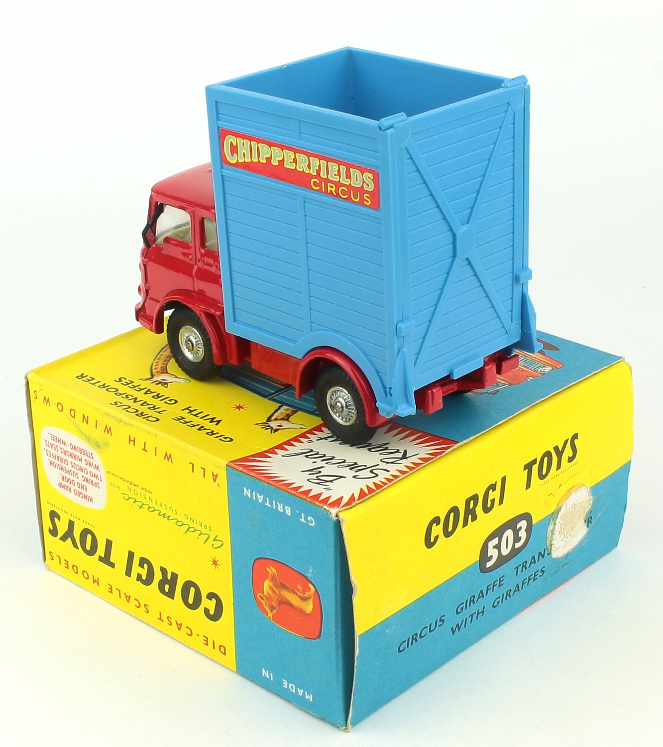 Circus Giraffe Transporter with Giraffes by Corgi Toys, No. 503. Scarce with CAST wheels. Near mint plus/boxed. Complete with card packing piece. From The Pennsylvanian Collection.