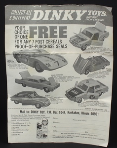 Ford Cortina Rally Car by Dinky Toys, No. 212. Near mint plus/boxed. With PROMOTIONAL LEAFLET. From The 25 Year Collection in California.