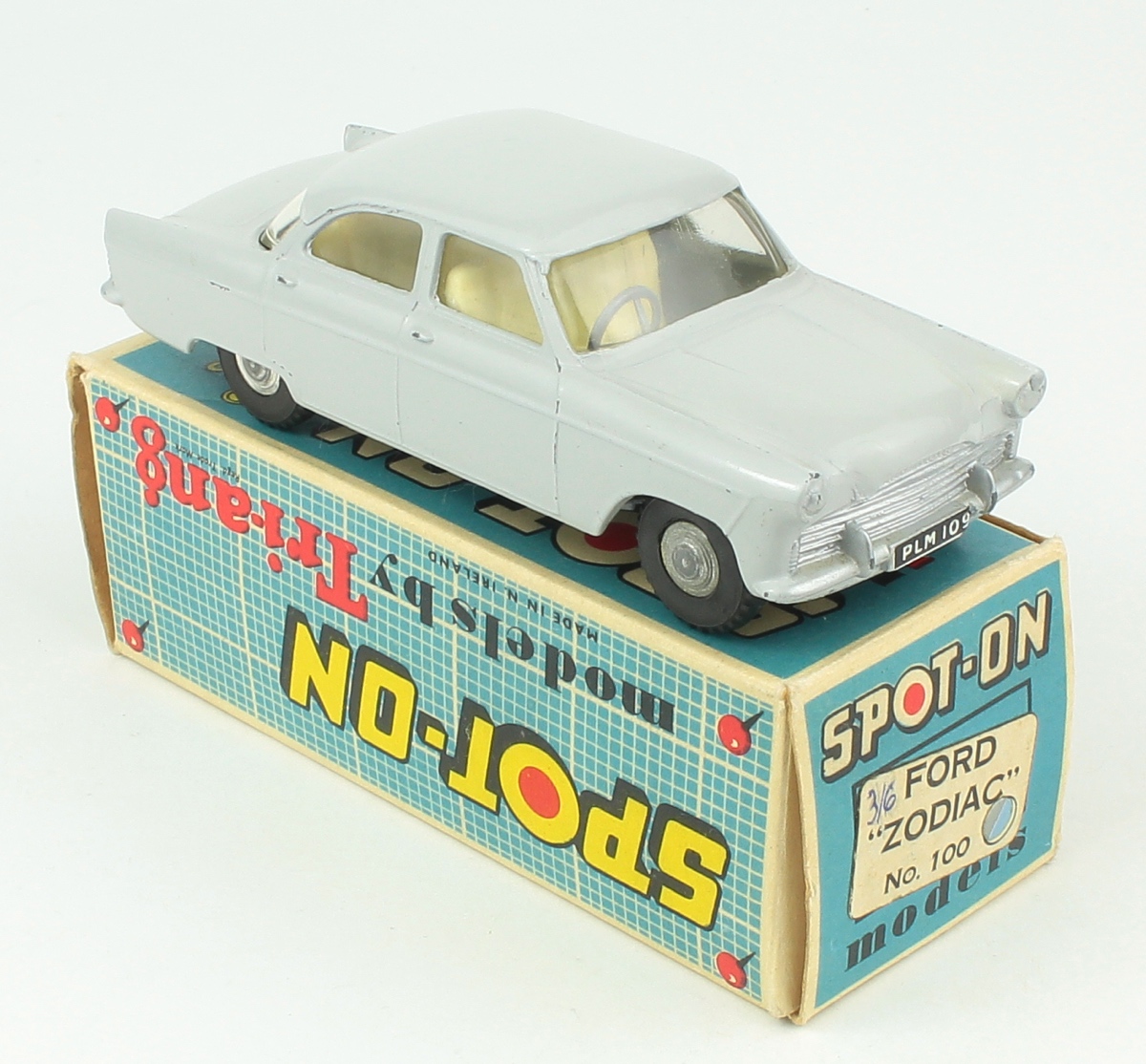 Ford Zodiac by Spot-on Models, No. 100. GREY issue with cream interior. Scarce. Near mint plus/boxed, with leaflets. From A Phenomenal Collection. QDT starting bid £200. Please note that QDT apply 12.5% buyer's commission.