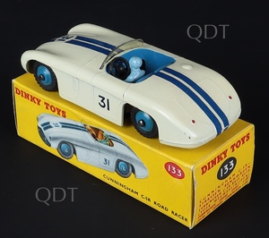 Cunningham C-5R Road Racer by Dinky Toys, No 133. Very near mint/boxed. Scarce version with a BLUE interior & BOLD blue-black door racing numbers. Very fresh deep yellow picture box. From The Berlin Collection.